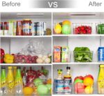 • 8 Pieces Fridge Organizer Bins Set: Each refrigerator storage bin measures 12.5’’ L x 6.3” W x 3.5” H. Use these clear fridge storage bins make your fridge organized and neat and gain much more space.