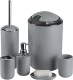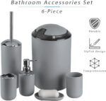 Home IMAVO Bathroom Accessories Set, 6-Piece Plastic Gift Set, Toothbrush Holder, Toothbrush Cup, Soap Dispenser, Soap Dish, Toilet Brush Holder, Trash Can (Grey)
