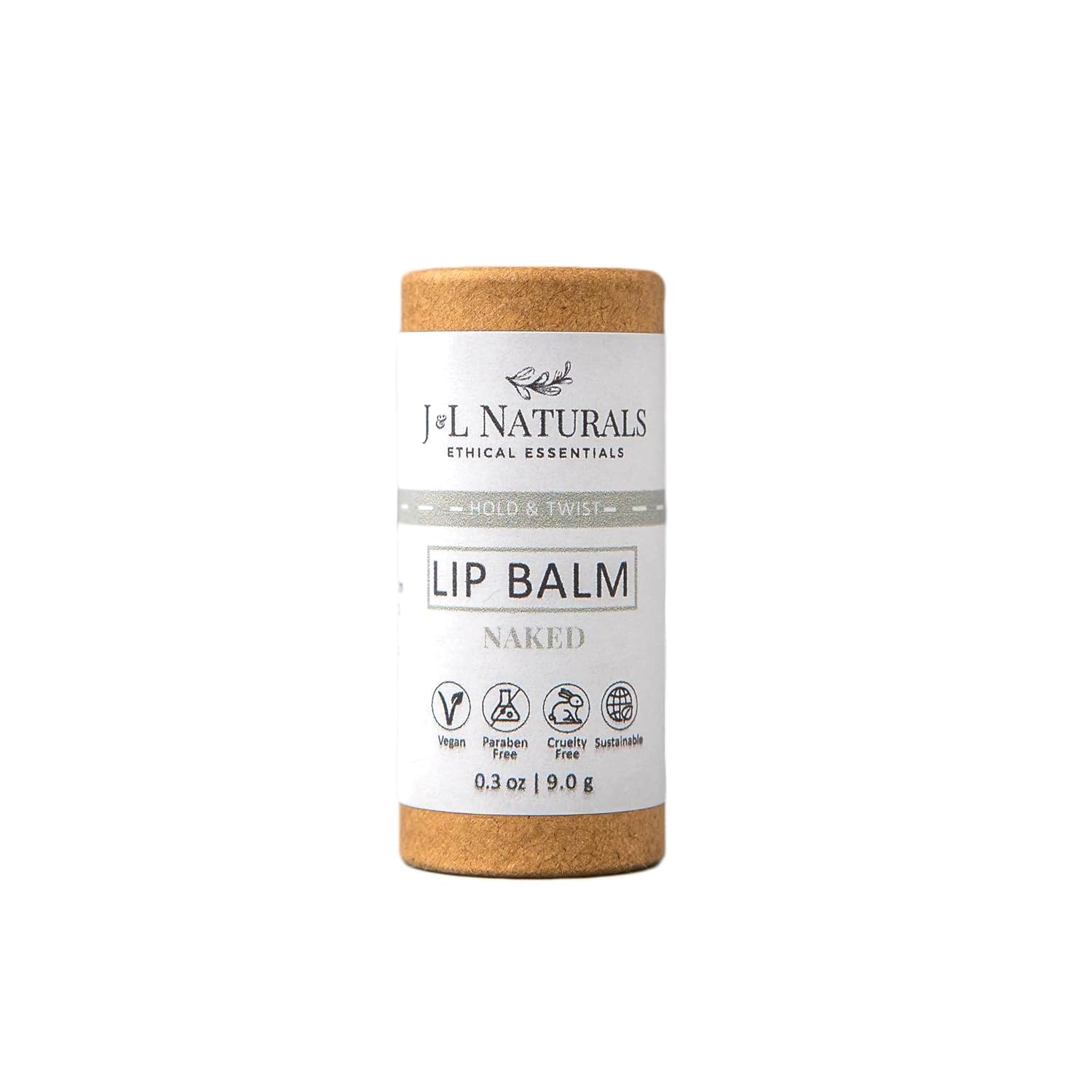 J&L Naturals Sustainable Lip Balm | Organic Ingredients, 100% Natural, Eco-Friendly | Cruelty Free, Vegan, Paraben Free, Silicone Free (Naked (Unscented), Single)