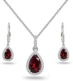 Design & DetailsWear this stylish set to enhance your daytime and evening attire. This beautiful jewelry set features dangling pear-cut gemstones in a white topaz encrusted halo design, for a dazzling evening look. The earrings measure 9.5mm in width & 11.6mm in length and the pendant measures 11.5mm in width & 25mm in length. |