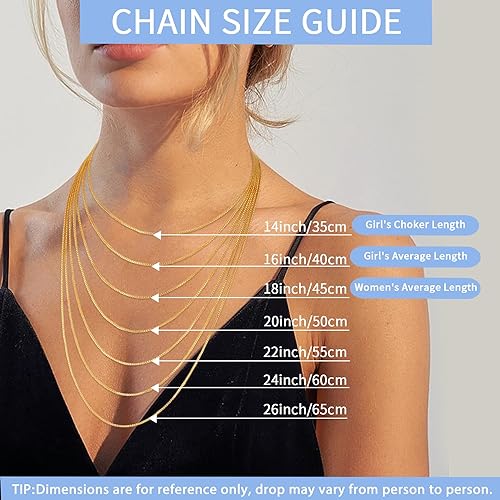 Jewlpire Italian 1.3mm Solid 14K Gold Over 925 Sterling Silver Chain Necklace for Women Girls, Italian Box Chain Thin & Strong Women’s Chain Necklaces 14 16 18 20 22 24 26 Inches