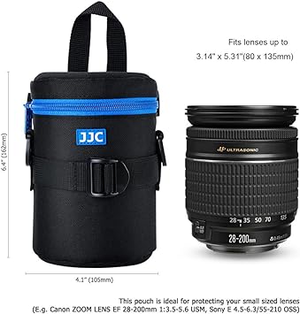 JJC Deluxe Lens Pouch Series is designed to carry a typical SLR lens. This series has 8 different sizes for lenses of different focal lengths. Features heavy-duty polyester construction with a foam cushion interior, provides great protection and shock absorption for your lens. It is a good partner for outdoor photography!