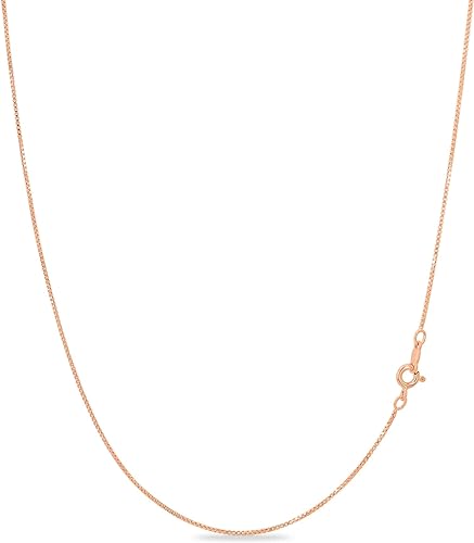 This classic rose gold sterling silver box necklace chain is crafted in Italy with high quality materials that resist wear and tear over time for long lasting performance. It is made of solid genuine .925 sterling silver. These box chains are approximately 1mm thick, making them light, durable & comfortable to wear. The sturdy spring clasp ensures a comfortable and secure fit and allows you to customize this chain with charms and pendants that will be held securely in place.