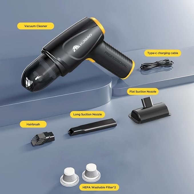 Be the first to review “KJBAO Aspiradora de coche, portátil de alta potencia 9000 PA, aspiradora inalámbrica recargable tipo c 4000 mAh, aspiradora de mano para el hogar y la oficina” Cancel reply