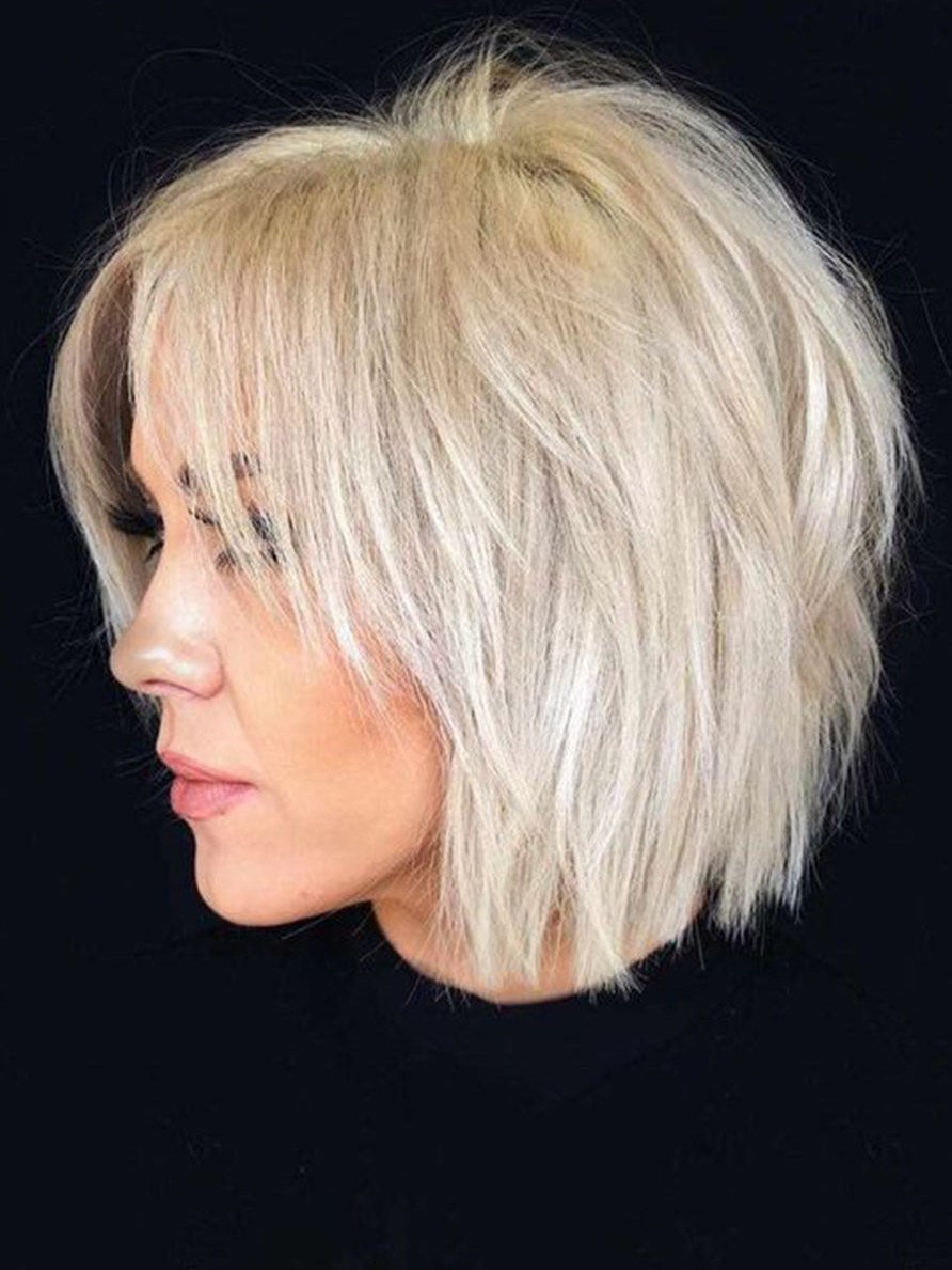 Lace Front Cap Women Straight 120% 10 Inches Wigs Popswig Heat Resistant Natural Looking Daily Party Wigs Cosplay Wigs with Natural Bangs with Free Wig Cap
