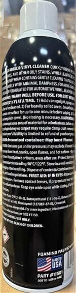 Una formulación de alta espuma y adherente que ataca y afloja instantáneamente la suciedad, elimina las huellas dactilares y las manchas de la mayoría de la tela, alfombras y superficies duras. Limpia vinilo, cuero, plástico y tela sucios. Excelente para alfombras. La espuma elimina suavemente la suciedad y la mugre. Minimiza el tiempo de secado en comparación con un producto líquido.