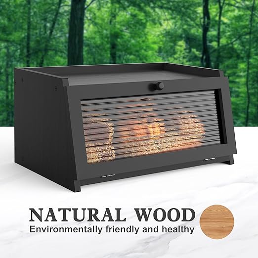 • High-Quality Wooden Bread Box: Crafted from premium wood, this bread box is sturdy and durable, with a natural aesthetic and exceptional quality. Made from eco-friendly wood materials, it is non-toxic and safe, ensuring the safety and health of your food.