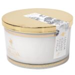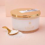 Embrace an elegant escape. Melt your worries away with a luxurious sea salt soak that’s delightfully fragranced & richly relaxing. Soothing the senses with uplifting notes of White Amber & Mirabelle, this blissful bath time retreat leaves skin silky soft and the mind rejuvenated. Gold accents and a reflective lid add brilliant shine to this gorgeous white glass jar and tub-side keepsake. Inside, a delicate linen drawstring bag holds the luxurious sea salt soak, paired with a golden spoon to add an extra dose of luxury to your bath time ritual. An elegant gift and lavish at-home treat that anyone will cherish.