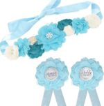 - 【BABY SHOWER MUST HAVE】Great gift for mom to be, the flower arrangement looks lovely, and absolutely beautiful on photo. They can also be the nice addition to baby shower gender reveal party! Mom may also put the sash behind the chair to get the “special seat”.