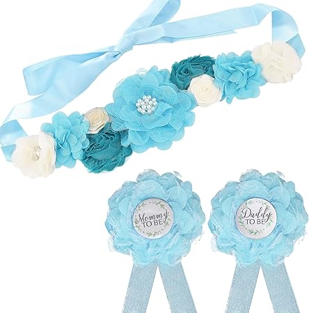 - 【MATERNITY SASH & PIN SET】Includes 1pcs Mommy to baby sash, 1pcs Mom to be corsage and 1pcs Dad to be corsage. Perfect for both baby boy or girl shower theme party. Create cute pictures for photo shooting or baby albums.