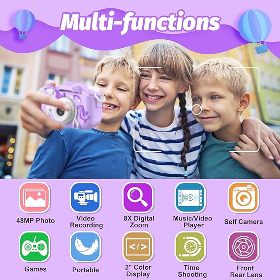 【1080P HD Video Recorder Kids Camera】- Equipped with 8x digital zoom, up to 48.0 Mega pixels and 1080P HD resolution,