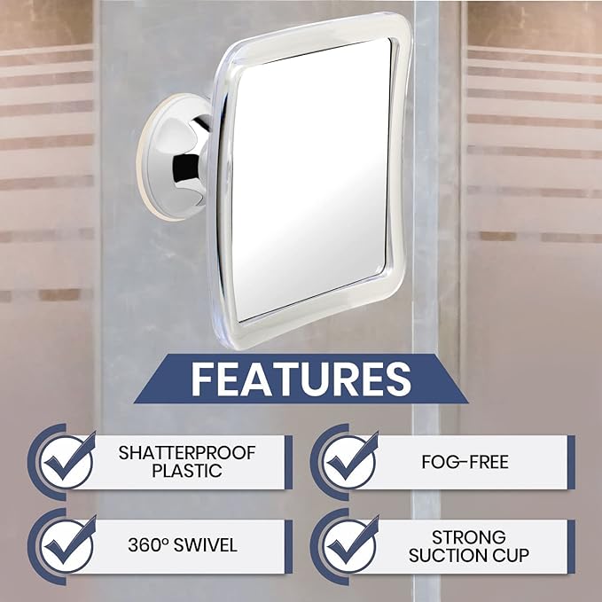 Fogless Shower Mirror with Razor Holder Fogless Shower Mirror with Upgraded Suction Cup Shatterproof Fogless Shower Mirror Shatterproof Fogless Shower Mirror with 3X Magnification Mirrorvana White Fogless Shower Mirror Chrome Fogless Shower Mirror with Razor Holder and Hot Water Basin