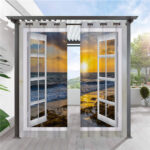 Modern 3D Scenery Outdoor Curtains Sea View from the Window Grommet Top Cabana Curtain Waterproof Sun-proof Heat-insulating Polyester 2 Panels $66.50 – $110.58