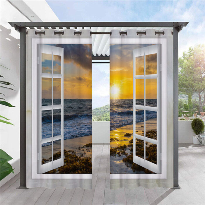 Modern 3D Scenery Outdoor Curtains Sea View from the Window Grommet Top Cabana Curtain Waterproof Sun-proof Heat-insulating Polyester 2 Panels
