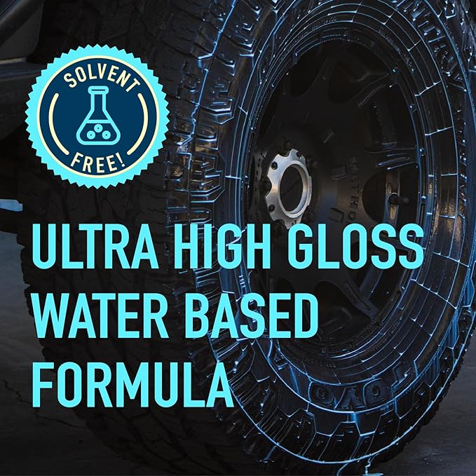 • ✅ WATER BASED FORMULA: A general purpose, water based silicone dressing produces a gloss finish on all tires, vinyl, rubber, and plastic surfaces both inside and outside the vehicle. Silicone emulsion formula.