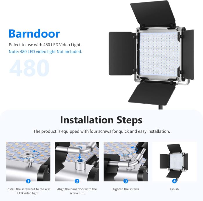 Neewer Professional LED Video Light Barn Door for Neewer 480 LED Light Panel 4.5×6.9 Inches/11.5×17.5 cm, Solid Metal (Only Barndoor Included)