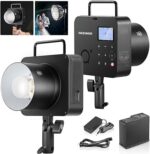 - 【21.6V/2800mAh Lithium Battery】Increased battery capacity provides 400 full power flashes, a recycling time of 0.01-1.2s and a flash duration of 1/209-1/10989s, perfect for capturing continuous action. Battery compartment for easy replacement of spare batteries. With a DC charging port, the flash can be powered via the included adapter and takes about 3.5 hours to fully charge