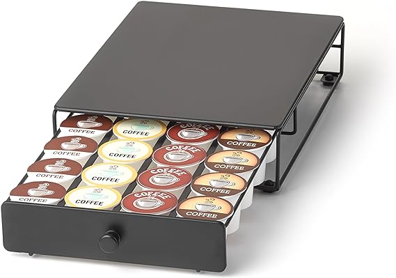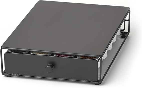• KITCHEN ORGANIZER: The functional and hassle-free style allows you to stand any coffee brewer on top of the drawer. With a chic black powder-coated finish, this holder will fit perfectly into your kitchen, dorm countertop, or office coffee bar.