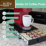 Home Coffee Pod Holders Nifty Coffee Pod Mini Drawer – Black Finish, Compatible with K-Cups, 24 Pod Pack Holder, Non-Rolling, Under Coffee Pot Storage, Sliding Drawer, Home Kitchen Counter Organizer