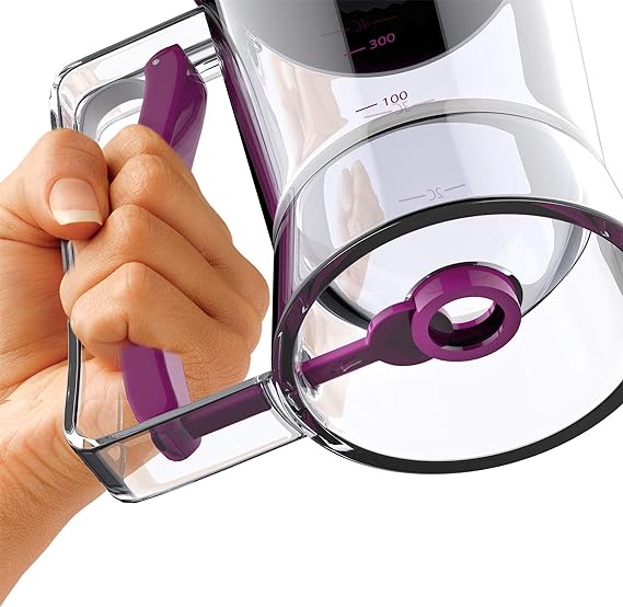 • PRODUCT DETAILS – Materials: Plastic. Dimensions: (L) 6.75″ x (W) 4.25″ x (H) 7.25″. Capacity: 4 Cups or 900mL. Color: Purple.