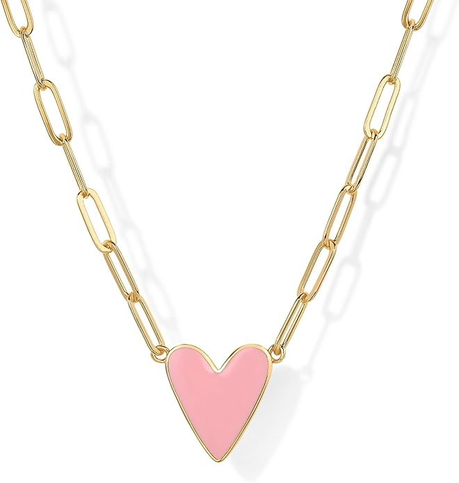 Be the first to review “PAVOI 14K Gold Plated Heart Enamel Pendant Necklace for Women | Love Paperclip Chain Necklaces | Blue Pink Purple White Enamel Heart Pendants” Cancel reply