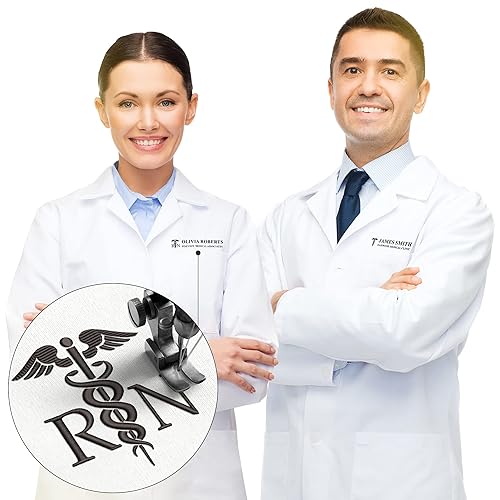 Home Health & Personal Care Personalized Embroidered Lab Coat for Men and Women with Medical Specialty ICON & Name, Custom Text, and 13 Thread Colors – Professional and Stylish!