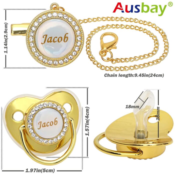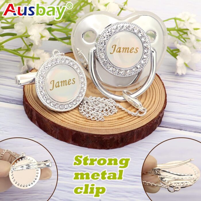 Ausbay Personalized Pacifier and Clip for Baby Boys Girls, Bling Crystal Pacifier with Gift Box and Greeting Card