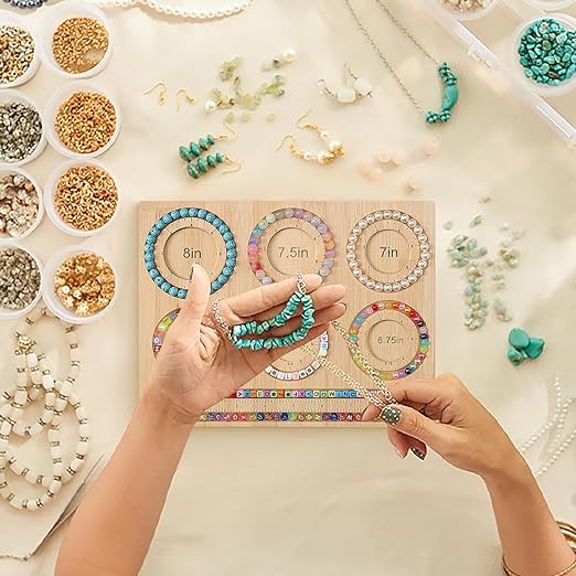 • ☘️【Easy to Use】Each package contains a bead board for jewelry making, shown beads and tools are not included. Our bamboo beading board is made of natural bamboo, which is of high quality and sturdy, suitable for making bracelets in different sizes.