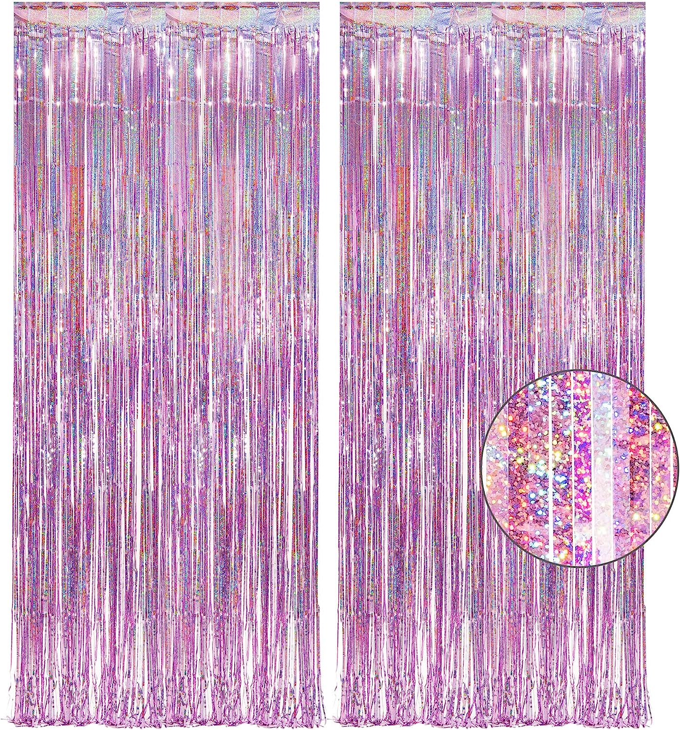 • Pack of 2, 3.2 ft x 8.2 ft for each. With a length of 8.2 feet, GREATRIL foil fringe tinsel backdrops are perfect for the wall to create an impressive decoration for parties, events, and photo booths.