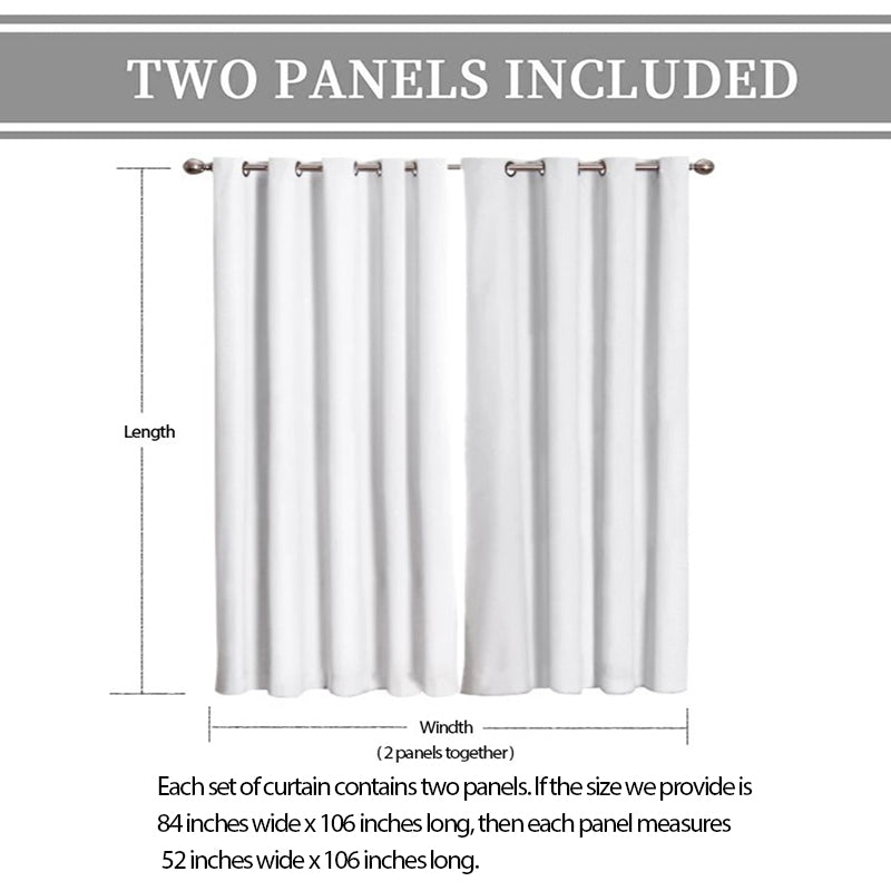 · Each set of curtain contains two panels. If the size we provide is 118 inches wide x 106 inches long, then each panel measures 59 inches wide x 106 inches long.