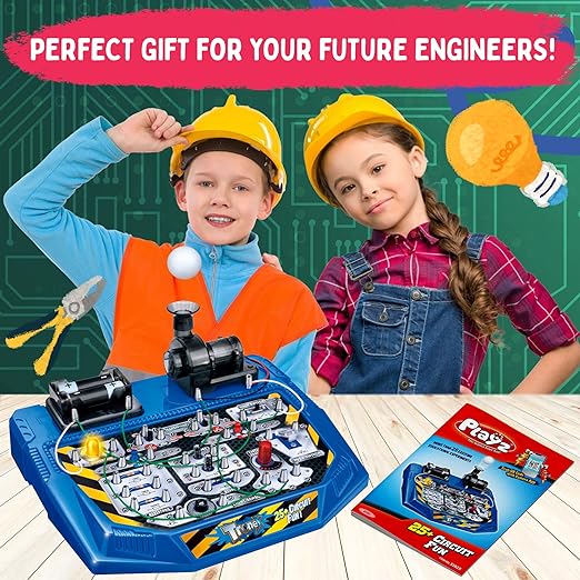 - CREATE YOUR OWN CIRCUITS – Does your student or child love learning about science, physics, mechanical, structural, and electrical engineering? This Playz Starter Electronic Circuit Board Toy gives kids the chance to explore how a variety of electronics work, including lights, sounds, magnetism and even radios! Boys and girls can learn how to wire, build and engineer over 25+ exciting electronic experiments for boys and girls!