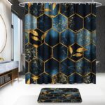 Be the first to review “Poedist 4 Pcs Bathroom Shower Curtain Set,Bathroom Sets with Rugs(Bath Mat,U Shape and Toilet Lid Cover Mat) and 12 Hooks,Black and Blue Honeycomb Marble” Cancel reply
