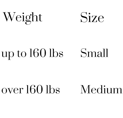 • SIZING by weight, up to 160 lbs = Small, over 160 lbs = Medium