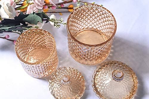 Rainie Love Home Basic Food Storage Organization Set-Crystal Diamond Faceted Jar with Crystal Lid,Suitable as A Candy Dish,Cookie Tin,Biscuit Barrel,Decorative Candy Jar (Amber, 16 oz)