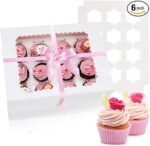 Rarapop 6-Set Cupcake Boxes Hold 12 Standard Cupcakes, Food Grade Cupcake Holders Bakery Carrier Boxes with Windows and Inserts for Cupcakes, Muffins and Pastries