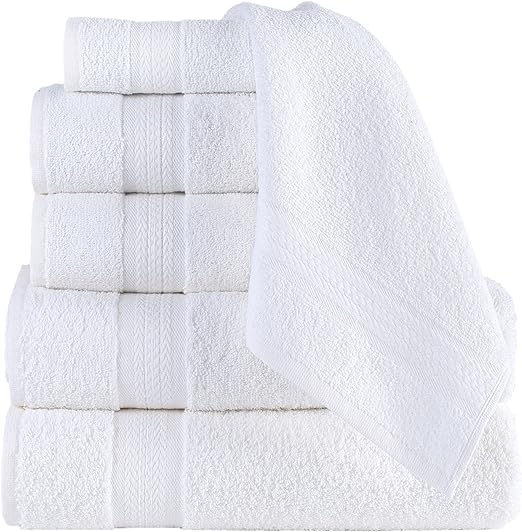 Home Bath Linen Sets REGAL RUBY, 6 Piece Towel Set, 2 Bath Towels 2 Hand Towels 2 Washcloths, Soft and Absorbent, 100% Turkish Cotton Towels for Bathroom Shower Towel, Bath Linen Set White