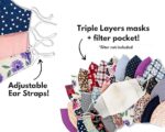 - All masks are made with triple layer cotton fabrics including a filter pocket to insert disposable masks, carbon filters or PM 2.5.