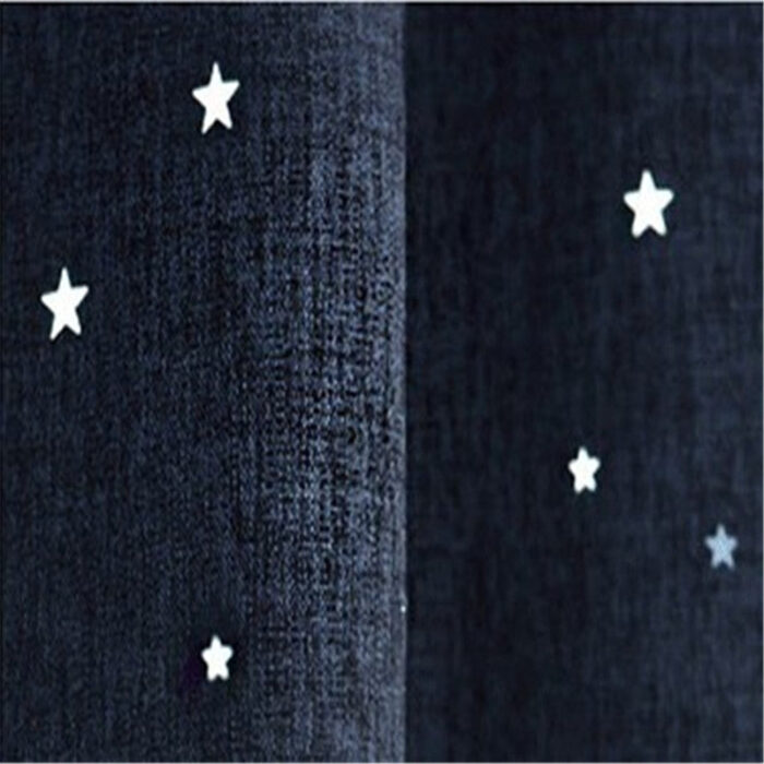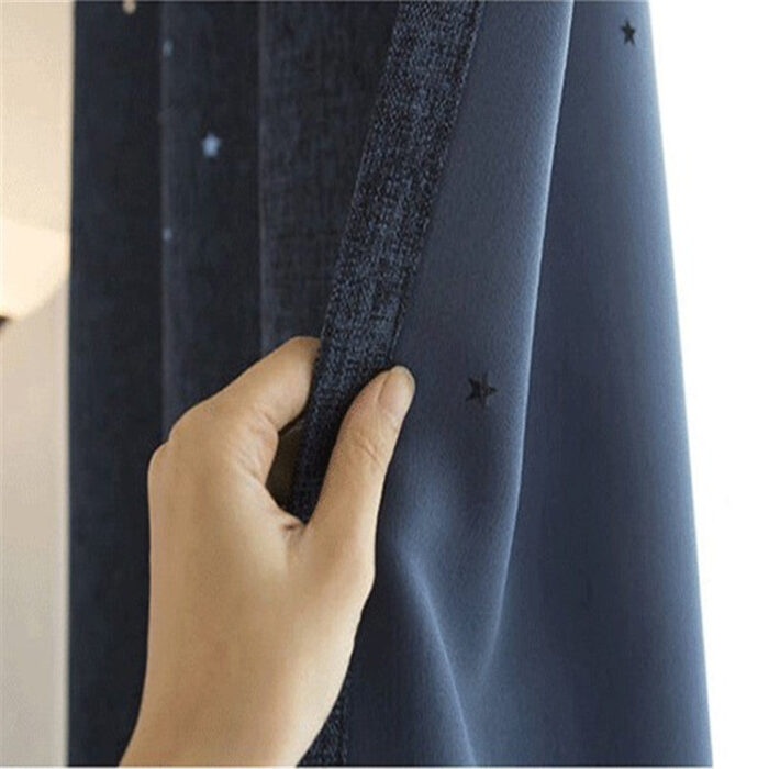 ECO-FRIENDLY: NO chemical coatings, no foil printing, adopt laser cuttig out technology which is more healthier and safer for peope, eapecially baby and kids. Both sides on star curtain are the same color.