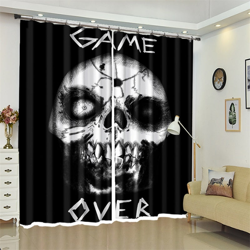 3D Terrible Skull Printed Thick Polyester 2 Panels Blackout Living Room Curtain