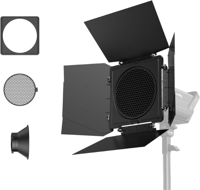 - 【Versatile Compatibility】The SmallRig 8-Leaf barn doors feature a Bowens mount adapter that is compatible with all Bowens mount lighting fixtures. It has a barn door diameter of 18cm, making it compatible with 95% of standard modifiers available on the market. This LED video light barn door is designed to enhance your creative potential and effortlessly create professional and visually appealing lighting effects.