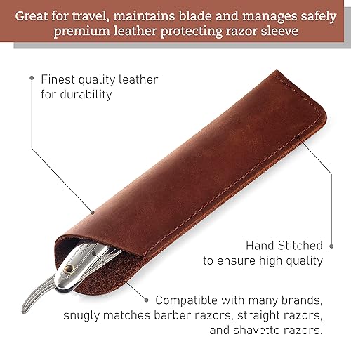 • Perfect for Travels. A genuine leather protective case will prevent damage to the straight razor and personal items while on the go. The perfect travel accessory for people who can’t imagine their travel or business trip without a favorite razor.