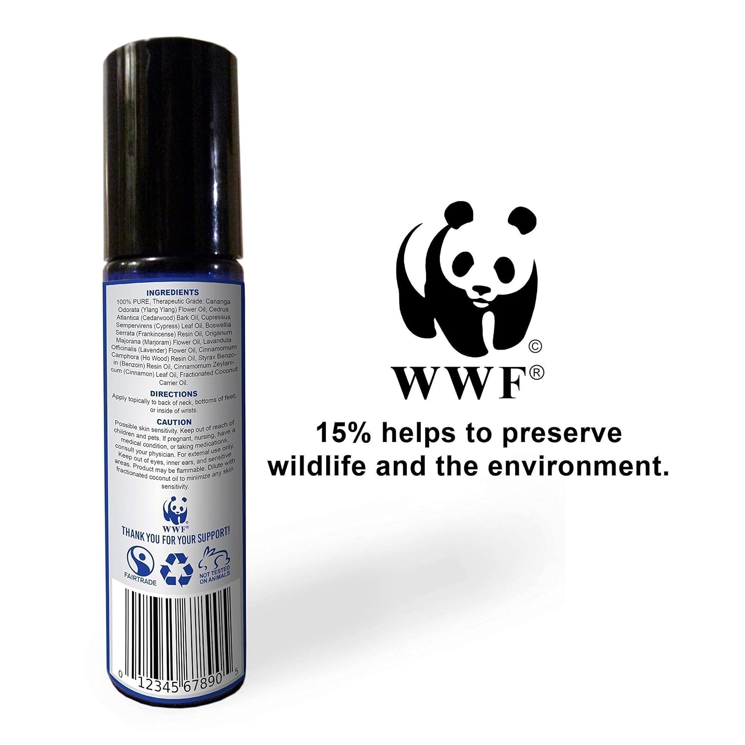 Ingredients 100% Therapeutic Grade: Cananga Odorata (Ylang Ylang) Flower Oil Cedrus Atlantica (Cedarwood) Bark Oil Cupressus Sempervirens (Cypress) Leaf Oil Boswellia Serrata (Frankincense) Resin Oil Origanum Majorana (Marjoram) Flower Oil Lavandula Officinalis (Lavender) Flower Oil Cinnamomum Camphora (Ho Wood) Resin Oil Styrax Benzoin (Benzoin) Resin Oil Cinnamomum Zeylanicum (Cinnamon) Leaf Oil Fractionated Coconut Carrier Oil.