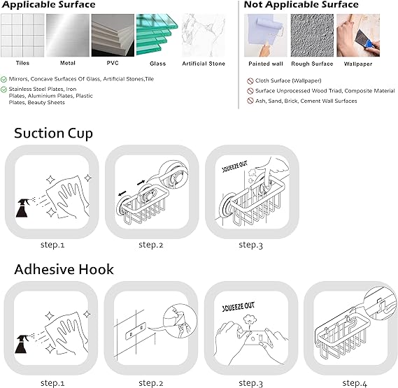 • Suction Cups Doesn’t Work Well On Natural Material, Like Stone, Cement, Granite, Silgranit, Composite and Marble etc.. Or Surface has rough texture.