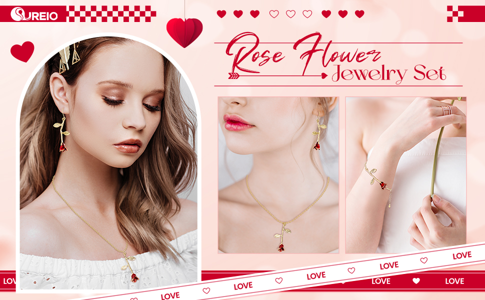 • Adjustable Size: this rose necklace for women is about 40 cm/ 15.7 inches in length, with a 6 cm/ 2.4 inches extension, fits most people to wear; The length of the rose flower bracelet link is about 17 cm/ 6.69 inches, with a 4 cm/ 1.6 inches length chain, you can adjust the length according to your need, and the rose earrings are measured about 4 cm/ 1.6 inches in length
