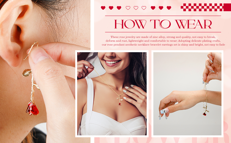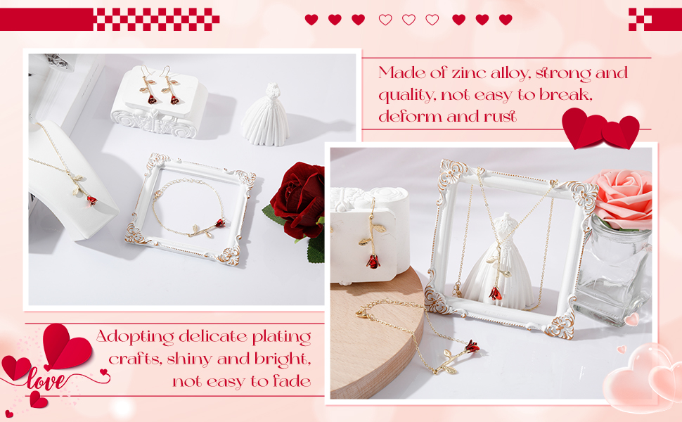 • Sturdy and Delicate: these rose jewelry are made of zinc alloy, strong and quality, not easy to break, deform and rust, lightweight and comfortable to wear; Adopting delicate plating crafts, our rose pendant aesthetic necklace bracelet earrings set is shiny and bright, not easy to fade