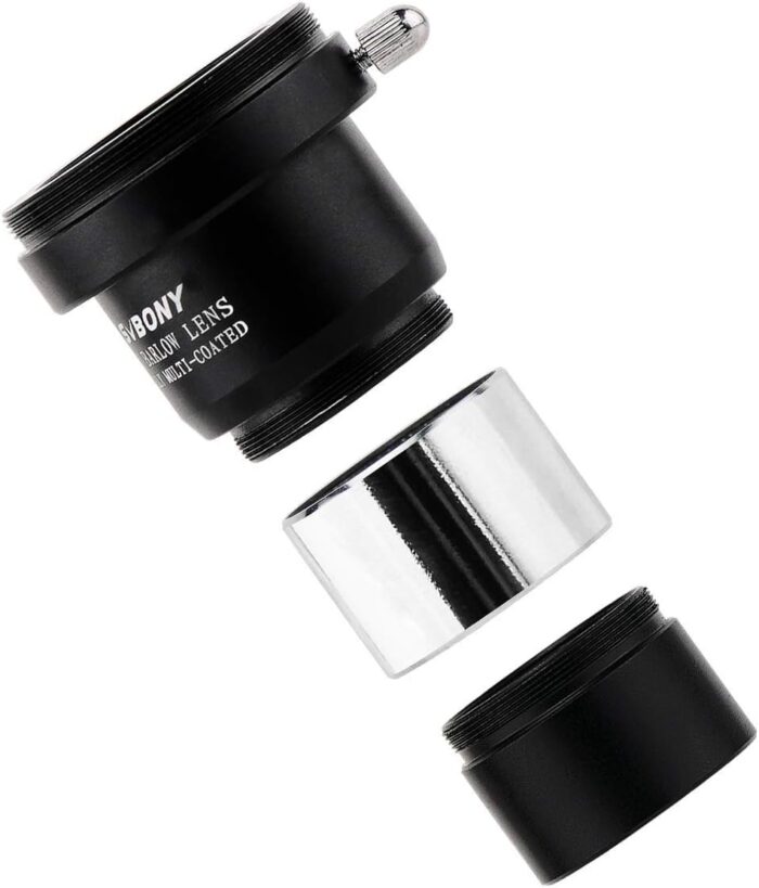 • 2X barlow lens adopts 2 element one group broadband green film multi coated optical glass; the housing is blackened to maximize image contrast; both that make image more crisp and sharp without additional chromatic aberration