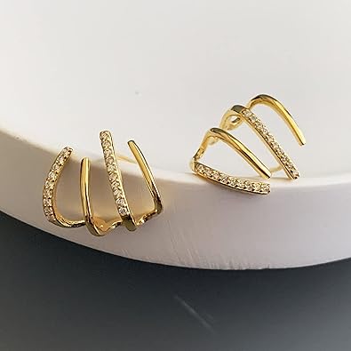 • ★Claw Stud Earrings Design★:Classic and simple 4 four-arc shapes, perfectly wrap the ears, using modern high-end manufacturing technology. Diamond-studded lines and smooth, sparkling lines complement each other for a dazzling radiance that makes you stand out and shine. Show nobility and elegance.
