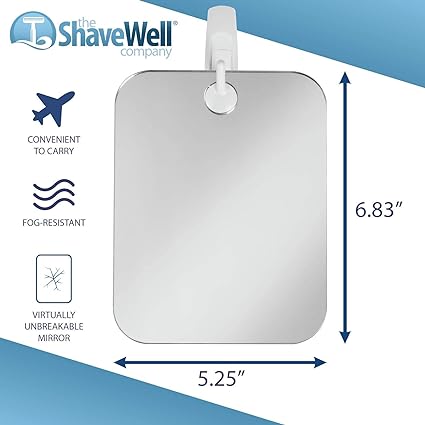 - Superior Bathroom Shower Mirror: Measuring 6.75” tall x 5.35” wide x 1/8″ thick and including a handheld option, the Shave Well Deluxe Fogless Mirror for shower use makes your entire shower or bath routine effortless! From shaving to removing makeup to brushing your teeth and more, this fogless shower mirror is an absolute essential.