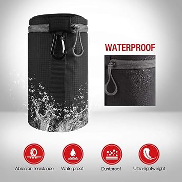 - HIGH QUALITY: The lens pouch is made of sturdy, thickening and water resistant nylon material, can well protect your lens from moisture, sand, dust and accidental bumps or scratches, perfect choice to place camera lens.