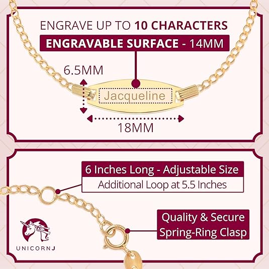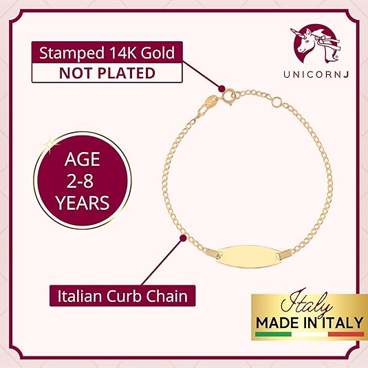 Be the first to review “UNICORNJ 14k Gold ID Bracelet Engravable Girls Boys Kids Baby Infant, Personalized Figaro Curb Chain Name Bracelets for Babies Newborn Toddler Child Girl Boy Yellow Gold, Made in Italy” Cancel reply